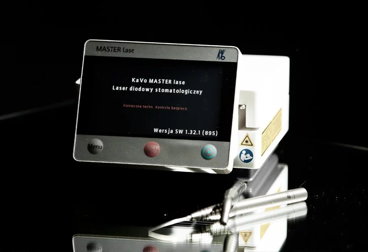 Laser diodowy KaVo MASTER LASE jest urządzeniem wykorzystującym energię skupionej wiązki światła białego o długości fali 980nm i mocy 0,2 – 8W, która zapewnia wysoką precyzję w zabiegach chirurgicznych i stomatologicznych w obrębie jamy ustnej. Umożliwia pracę w trybie ciągłym, pulsacyjnym oraz mikropulsacyjnym. Wygodny i efektywny przy tamowaniu krwawienia, poprawia widoczność w polu zabiegowym. Jego zastosowanie w chirurgii jamy ustnej minimalizuje powstawanie blizn pooperacyjnych. Obniża ból pozabiegowy i ogranicza obrzęk tkanek miękkich. Jego użycie powoduje dezynfekcję opracowywanych miejsc i tkanek, dając skuteczną ochronę przeciwbakteryjną.