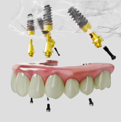 Kompleksowe rozwiązanie umożliwiające odbudowę całego łuku zębowego na zaledwie czterech implantach, zapewniając szybki efekt estetyczny i funkcjonalny. Zęby w jeden dzień.