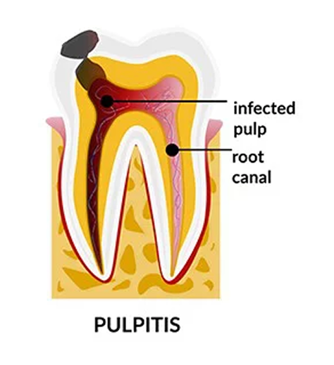 W wyniku próchnicy, czyli infekcji twardych tkanek zęba, do struktury miazgi mogą przedostać się drobnoustroje powodujące stan zapalny. Oprócz infekcji bakteryjnych przyczyną zapalenia mogą być również czynniki mechaniczne, chemiczne lub termiczne. Postępujący stan zapalny miazgi powoduje jej martwicę, nieleczony może rozprzestrzenić się na kość i pozostałe tkanki wokół wierzchołka korzenia zęba, wywołując stan zapalny okołowierzchołkowy.