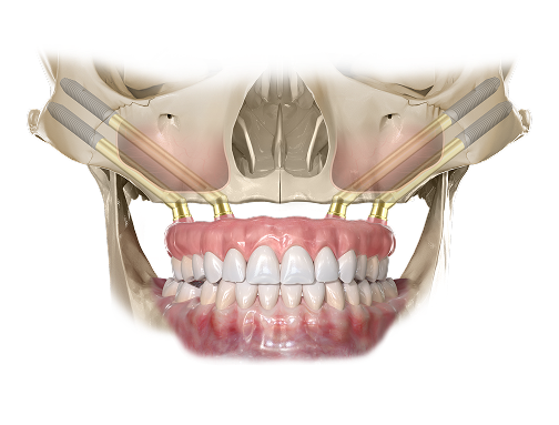 W przypadkach ograniczonej ilości kości w górnym łuku zębowym istnieje możliwość zastosowania implantów jarzmowych Zygoma. Te dłuższe wszczepy są zakotwiczane w kości jarzmowej, co zapewnia ich wyjątkową stabilność oraz pozwala na uniknięcie rozległych zabiegów rekonstrukcji kostnej. Rozwiązanie to sprawdza się zwłaszcza w sytuacjach, gdy tradycyjne implanty nie są możliwe do zastosowania. Nasz gabinet specjalizuje się w tej metodzie od 2000 roku.