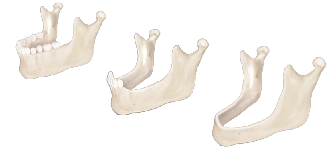 U pacjentów spotykamy 3 typy zaników kości wyrostka zębodołowego szczęk i żuchwy