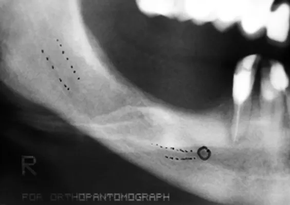 Ta szczególna metoda używana jest w obszarze dolnego łuku zębowego w sytuacji braku dostatecznej ilości kości na wysokość. Metoda stosowana jest w sytuacji rozległych zaników kostnych w bocznych odcinkach żuchwy, w której wprowadzenie implantów groziłoby uszkodzeniem gałązek nerwowych nerwów zębodołowych dolnych. Gałązki nerwowe biegną wraz z naczyniami krwionoś-nymi we wspólnej pochewce w kanałach kostnych, umieszczonych symetrycznie po obu stronach w trzonach żuchwy.